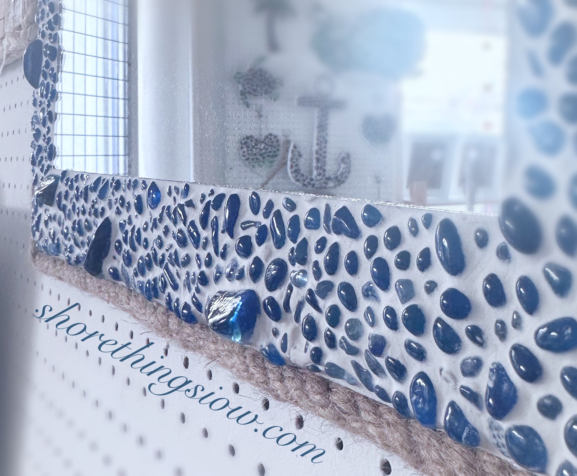 A beautiful blue decorative glass mirror