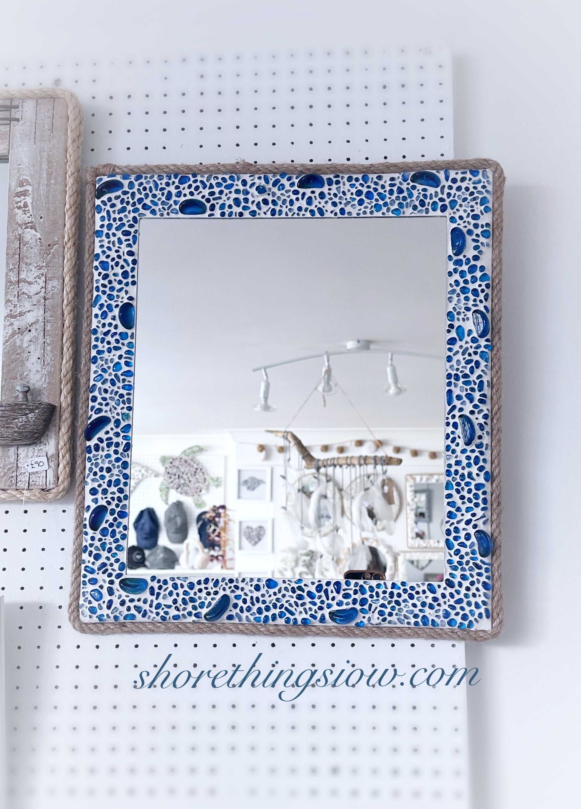 Blue glass mirror 16”x18”